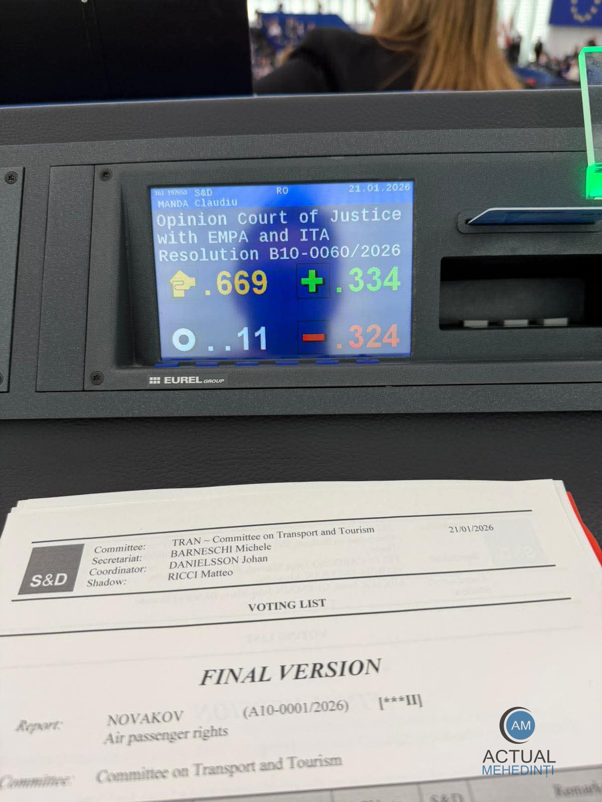 „Am votat PENTRU ca Acordul UE-Mercosur să ajungă la CJUE. Astfel, am considerat că apărăm interesele fermierilor români, dar și europeni. La fel au procedat toți europarlamentarii PSD. Cele 10 voturi ale noastre au făcut diferența, decizia Parlamentului European de a solicita CJUE să analizeze dacă Acordul Mercosur respectă tratatele europene a fost adoptată cu o majoritate de 334 de voturi pentru, față de 324 de voturi împotrivă. Nu contestăm beneficiile Acordului Mercosur! Însă nu putem accepta ca acestea să fie obținute în dauna unor sectoare de activitate importante pentru economia țării noastre. Vom continua să facem tot ce-i posibil să introducem în Acord garanții ferme și eficiente care să asigure o competiție egală între fermierii europeni și cei din America Latină.”, transmite europarlamentarul PSD Claudiu Manda.