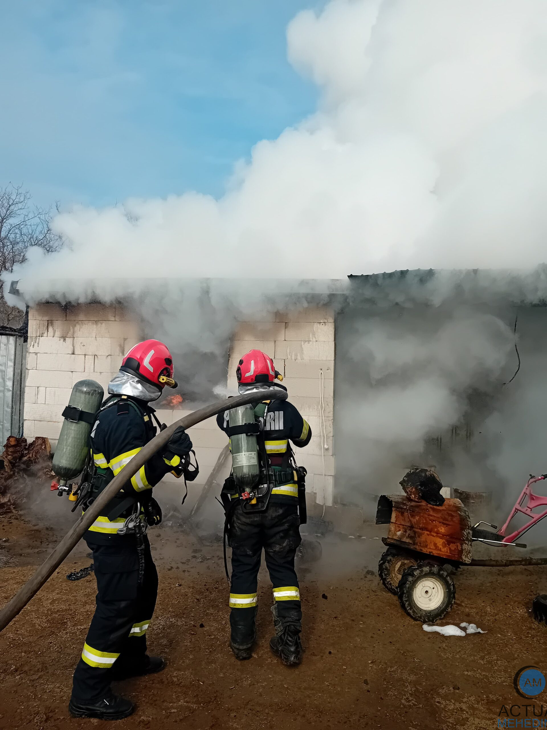 La sosirea pompierilor, incendiul se manifesta la o anexă pe o suprafață de aproximativ 30 mp.