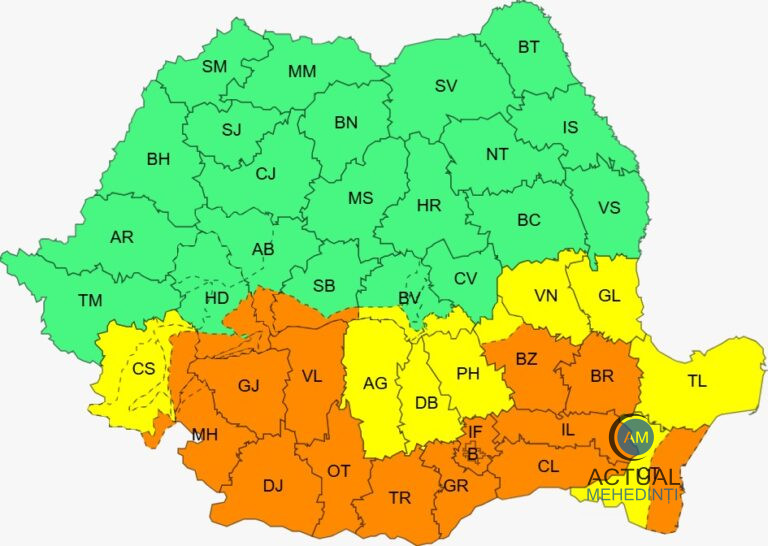 Hidrologii au emis o avertizare Cod roşu de inundaţii pentru judeţele Mehedinţi, Dolj, Vâlcea, Olt şi Teleorman, care va intra în vigoare vineri la prânz. Alte judeţe se vor afla sub avertizări Cod portocaliu şi Cod galben de inundaţii. Populaţia din zonele afectate este sfătuită să evite zonele cu risc.