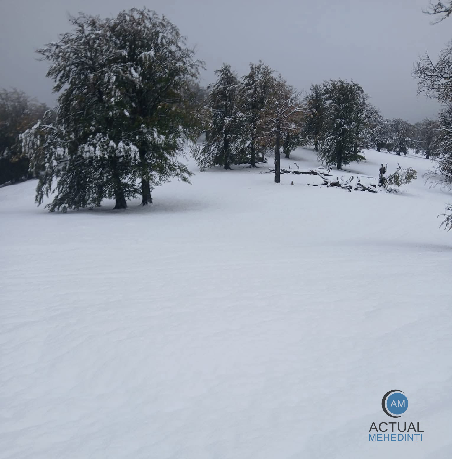 Primul strat de zăpadă s-a așternut în Poiana Beletina, din Isverna.