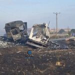 „Pe DN 56 A , la ieșire din localitatea Izimșa, s-a produs un accident rutier, în care sunt implicate două autotrenuri și un autoturism. În urma evenimentului rutier a izbucnit un incendiu care s-a propagat la toate cele trei vehicule. Polițiștii efectuează cercetări la fața locului pentru stabilirea împrejurărilor în care s-a produs evenimentul rutier. Traficul este blocat. De asemenea, la fața locului este prezent și un echipaj medical care acordă îngrijiri medicale de specialitate victimelor.”, transmite IPJ Mehedinți.
