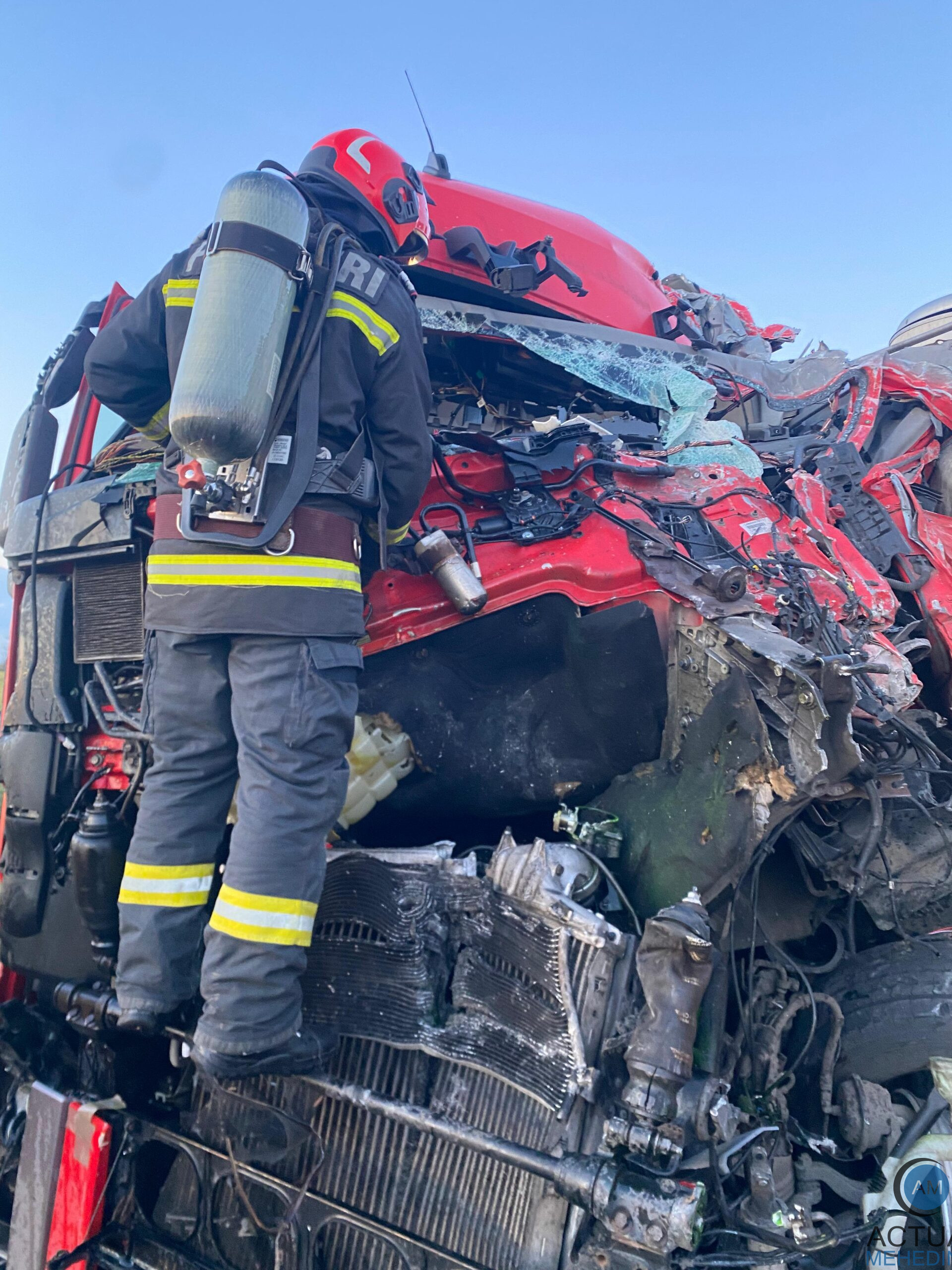 Forțele au ajuns la locul intervenției: în autotrenul încărcat cu motorină, se aflau 2 victime conștiente predare echipajului SAJ. Se asigură măsurile de apărare împotriva incendiilor. Din din al doilea autotren, a rezultat o victimă încarcerată. Se lucrează la extragerea acesteia.