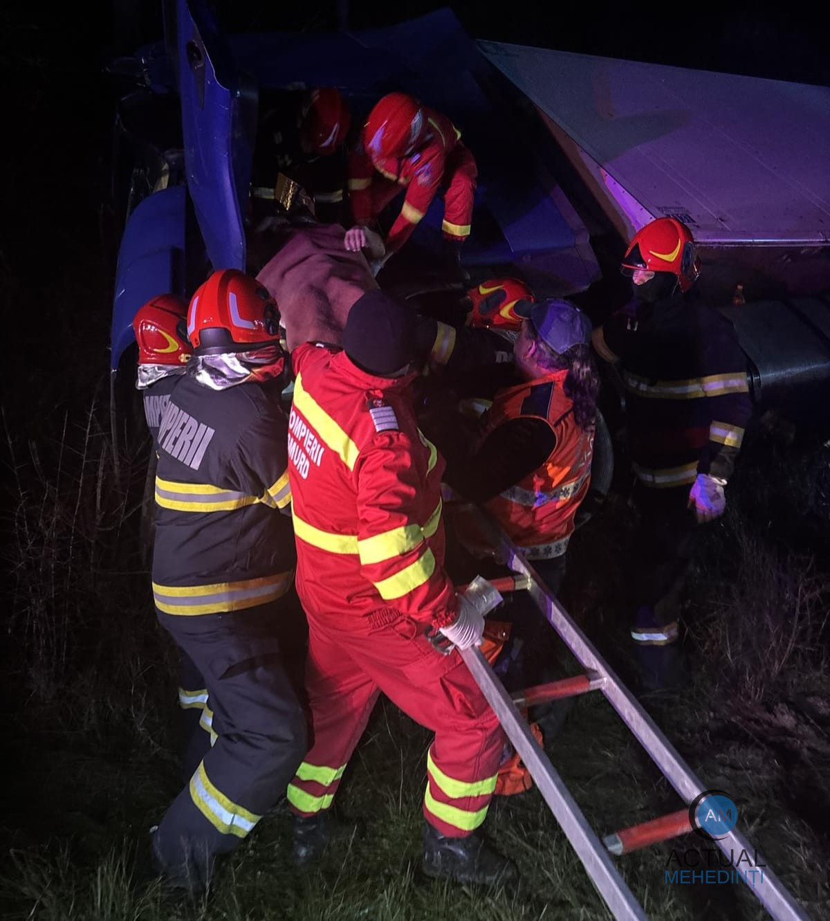 La sosirea salvatorilor, șoferul era blocat în interior, pompierii acționând pentru deblocarea acestuia. Victima, conștientă și cooperantă, a fost transportată la spital de către echipajul SAJ.