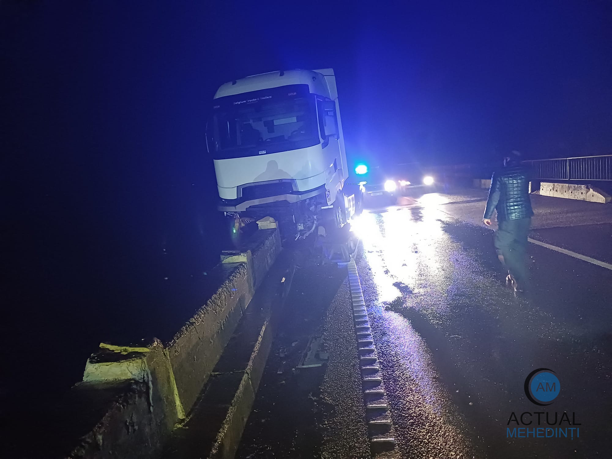 Un accident s-a produs în această seară pe DN6, între Drobeta Turnu Severin și Orșova, în zona viaductului Padina Virului. Un cap tractor a lovit parapetele de protecție, după ce șoferul a pierdut controlul asupra volanului. La fața locului, se află echipaje ale Poliției, care dirijează traficul, dar și echipe ale DRDP Craiova.