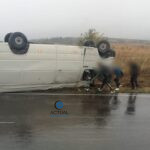 Accident produs pe DN 56A! S-a răsturnat cu duba în afara părții carosabile.
