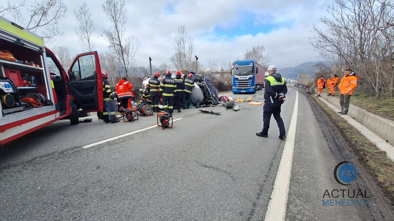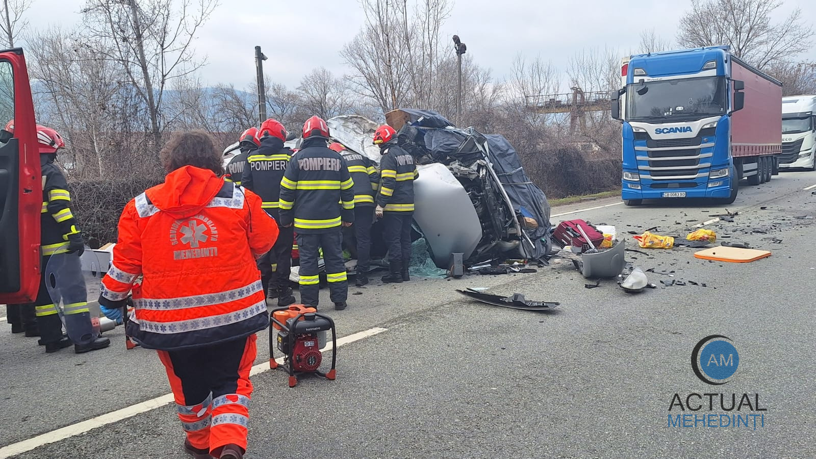 Șoferul autoturismului (care se deplasa pe direcția Drobeta Turnu Severin – Orșova) ar fi intrat într-o depășire, izbindu-se de autotrenul care circula pe sensul celălalt de mers. Pompierii acționează pentru descarcerare. Traficul rutier este blocat pe zeci de km pe ambele sensuri de mers.