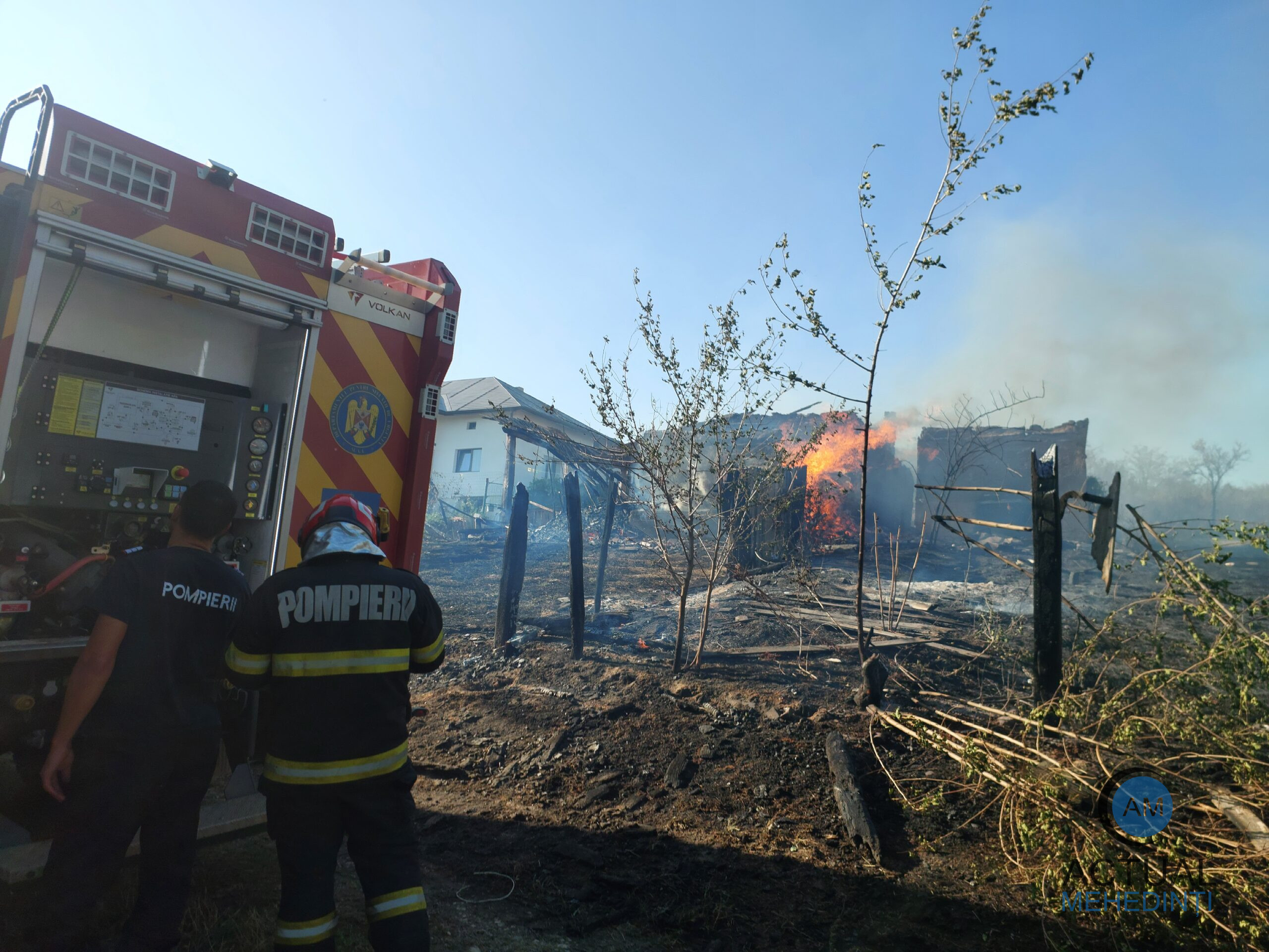 O nouă intervenție de amploare este în desfășurare pe raza localității Cârjei, comuna Hinova, acolo unde un incendiu izbucnit la vegetația uscată s-a propagat la două anexe gospodărești.