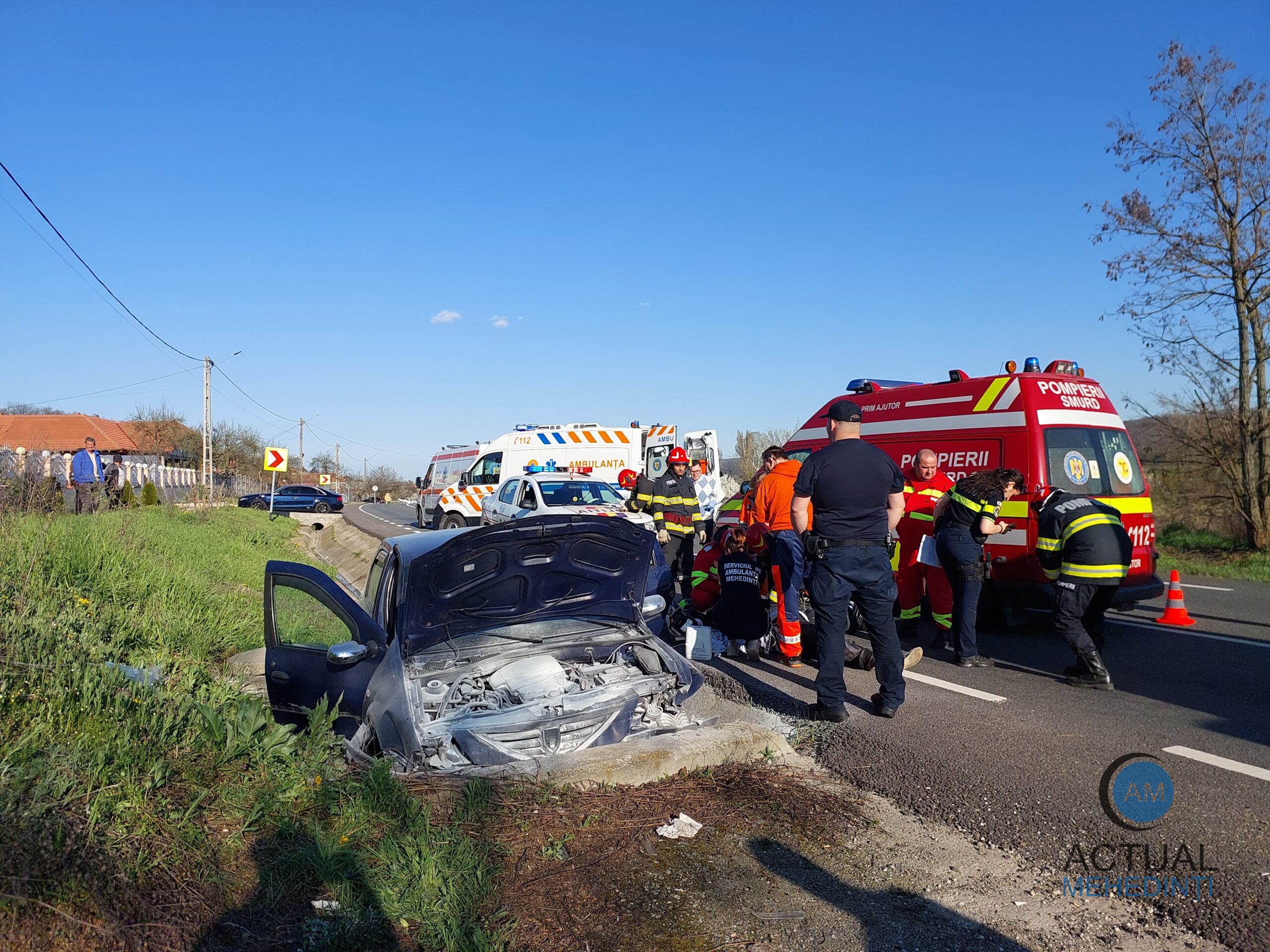 La fața locului, intervin pompierii Stației Strehaia, două ambulanțe și polițiștii Serviciului Rutier, pentru cercetări.