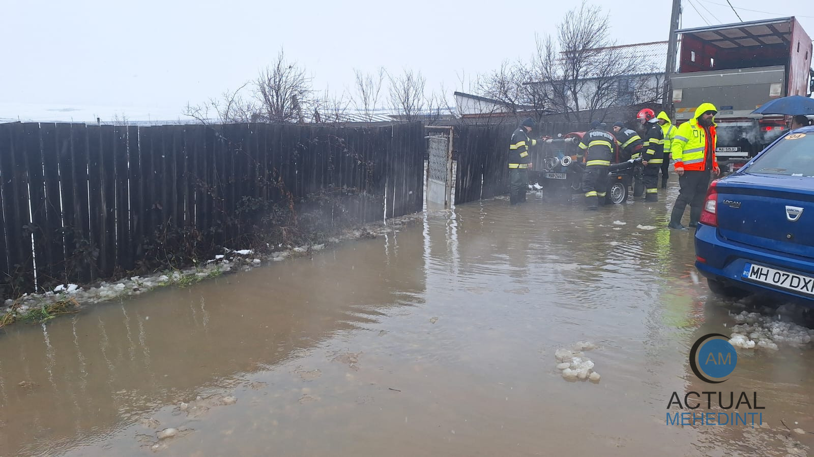La fața locului, intervin pompierii Detașamentului Drobeta, pentru evacuarea apei.