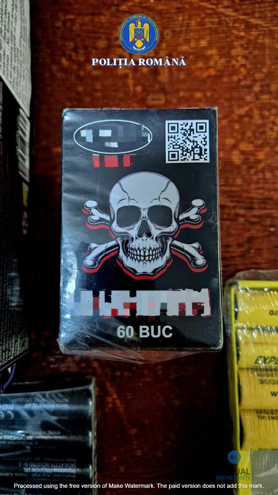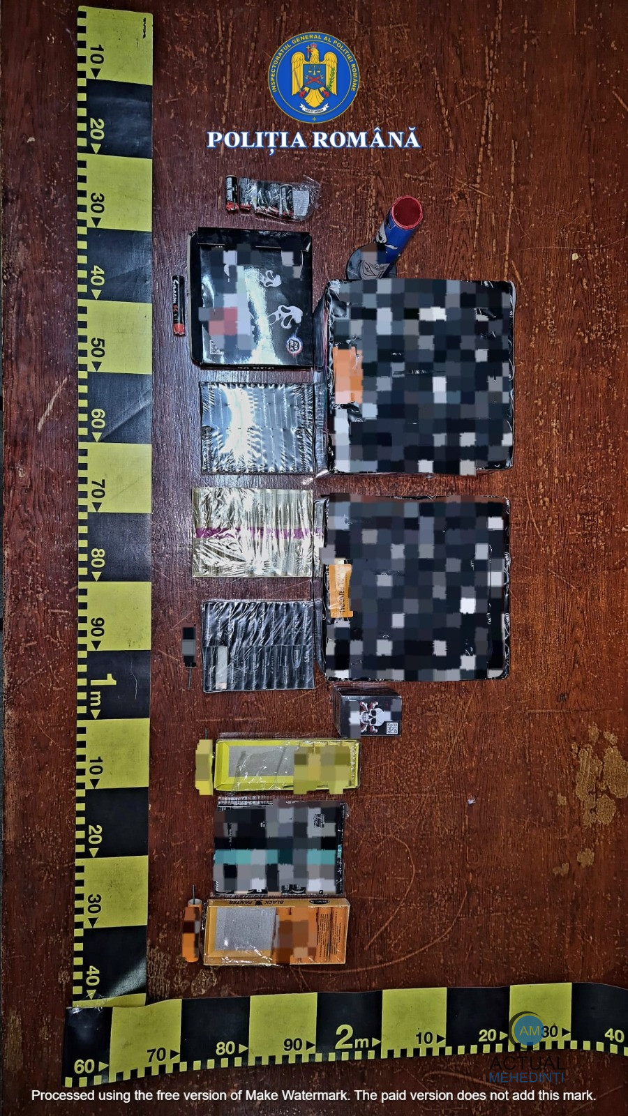Astfel, ieri, 29 decembrie, polițiștii din cadrul Poliției municipiului Orșova au ridicat de la domiciliul unui bărbat de 47 de ani, din Orșova, 7 kg. articole pirotenhice din categoria P1, cu diferite inscripții. Polițiștii continuă cercetările în acest caz.