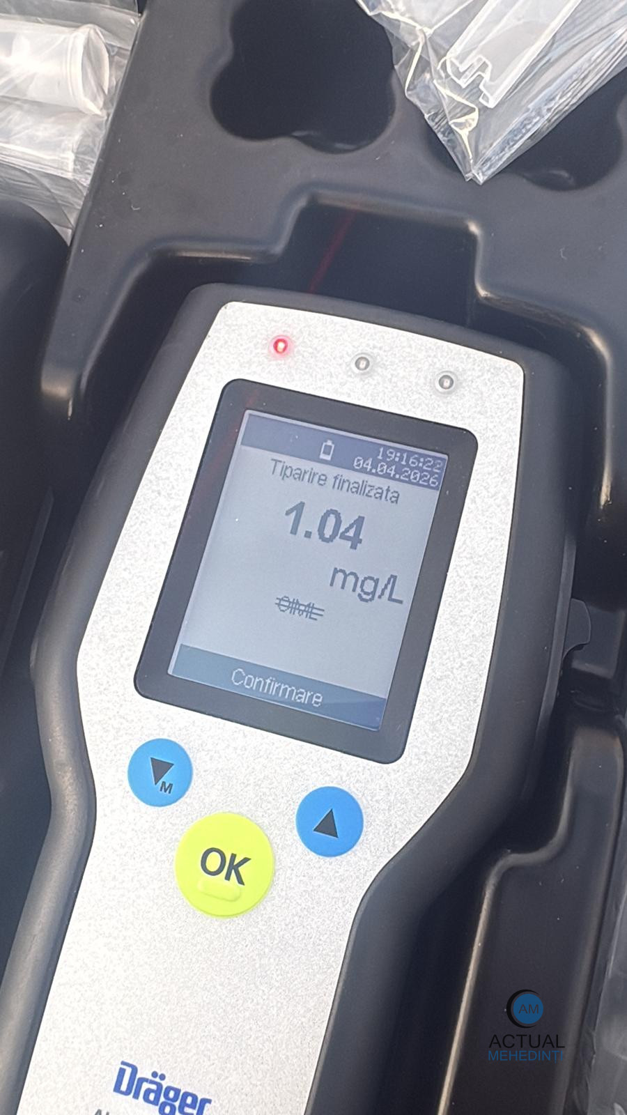 Bărbatul a fost testat cu aparatul alcooltest, care a indicat 1,04 mg/l alcool în aerul expirat. Acesta a refuzat recoltarea de mostre biologice în vederea stabilirii alcoolemiei. În cauză, a fost întocmit dosar penal, sub aspectul săvârșirii infracțiunilor de conducerea unui vehicul fără permis de conducere și refuzul sau sustragerea de la prelevarea de mostre biologice.