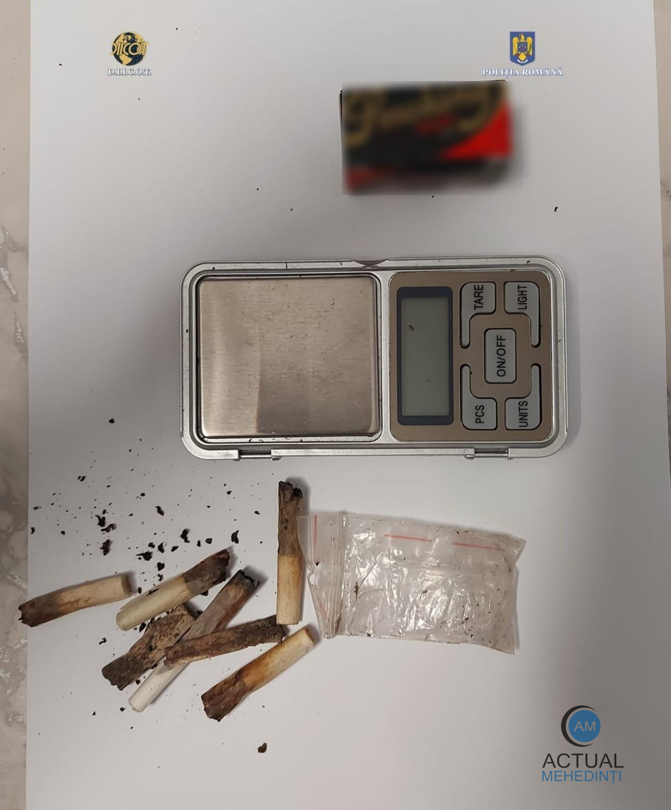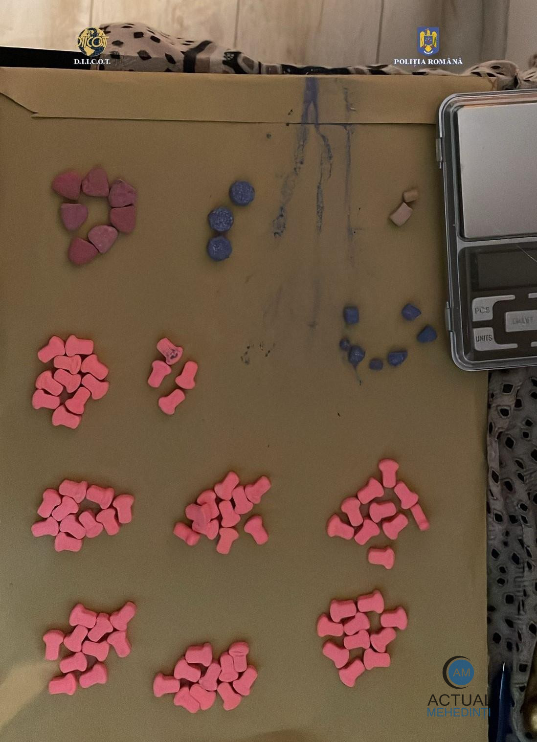 Cu ocazia perchezițiilor efectuate la locuințele inculpaților, pe raza municipiului Drobeta Turnu Severin, dar și în autoturismele acestora, au fost găsite și ridicate cantitățile de aproximativ 300 grame canabis (drog de risc), 84 de comprimate ecstasy și 10 grame cocaină (droguri de mare risc), 7 grindere, 6 cântare de precizie, obiecte purtând urme de substanță, sume de bani în lei, sisteme de stocare a datelor, precum și alte mijloace de probă.