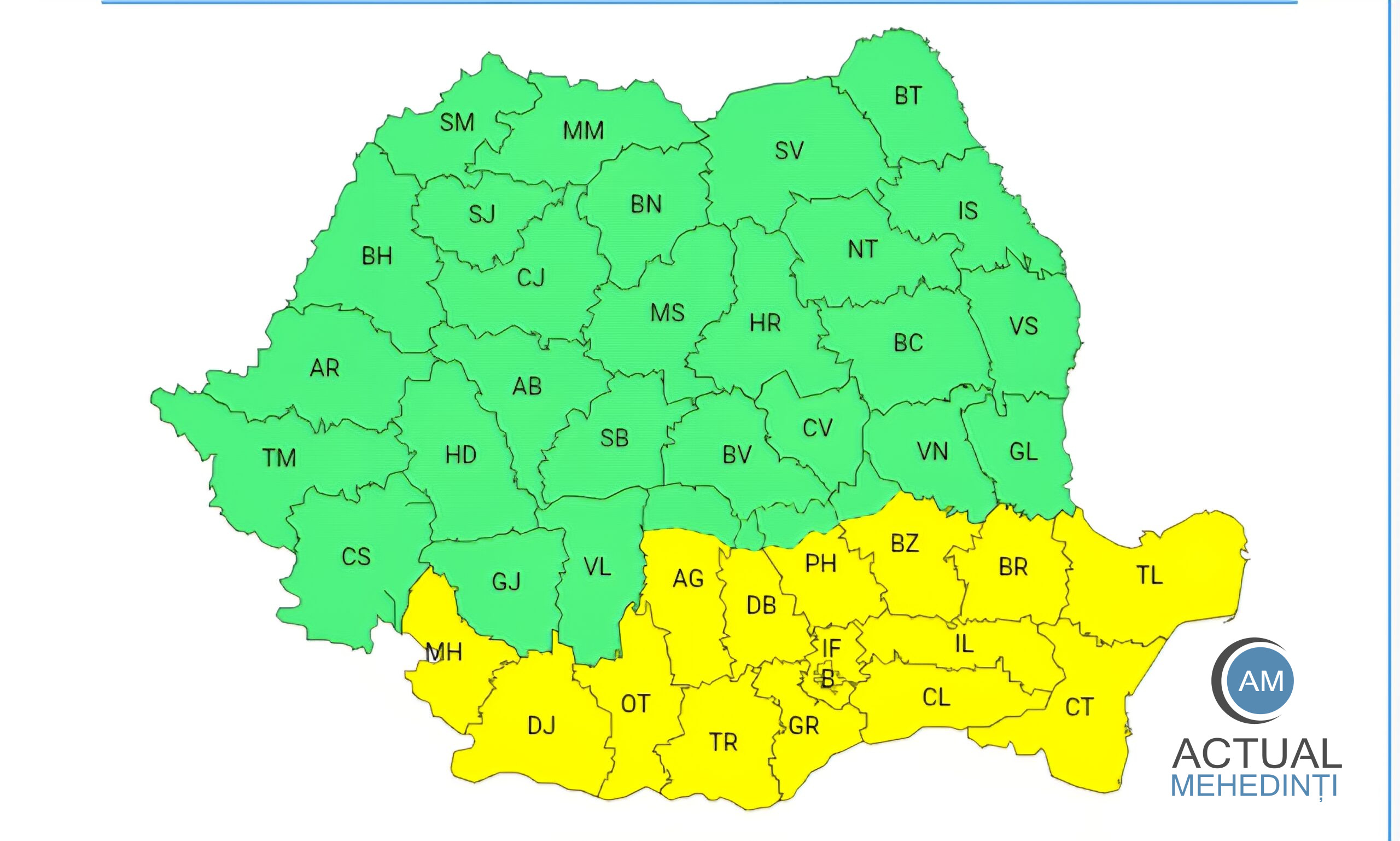 ANM a emis cod galben de vânt, valabil astăzi, 5 decembrie, până la ora 23.00. În acest interval, vântul va avea intensificări în Oltenia, Muntenia, Dobrogea și sudul Banatului, cu viteze de 50…70 km/h. În Munții Banatului și, local, în zona înaltă din vestul Carpaților Meridionali rafalele vor depăși temporar 80…110 km/h.