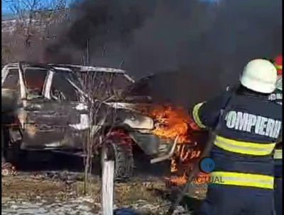 Autoturism făcut scrum, după ce a căzut de pe un pod! Șoferul a reușit să se autoevacueze.