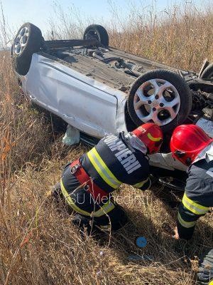 Accident în Salcia! S-a răsturnat cu mașina.