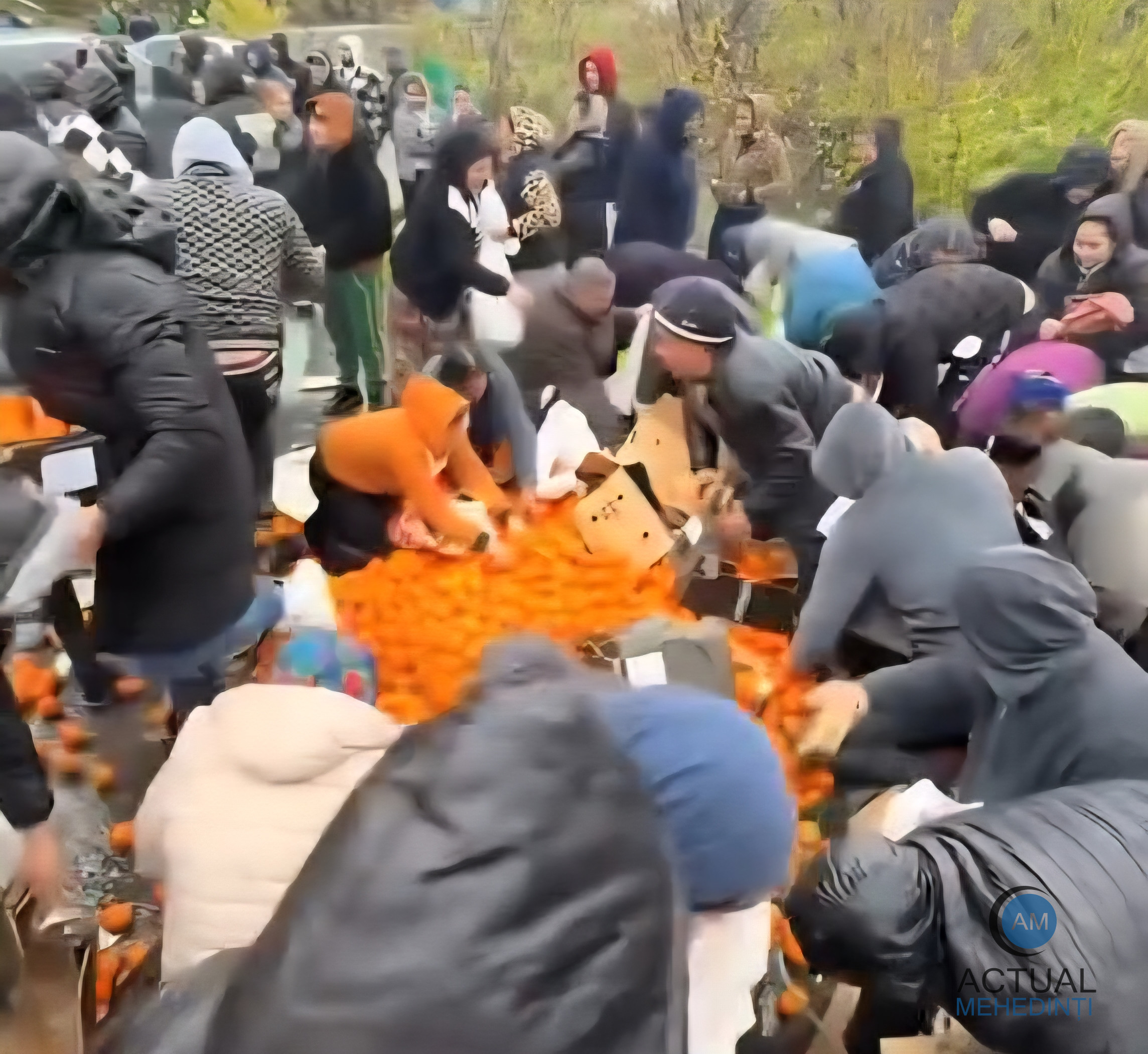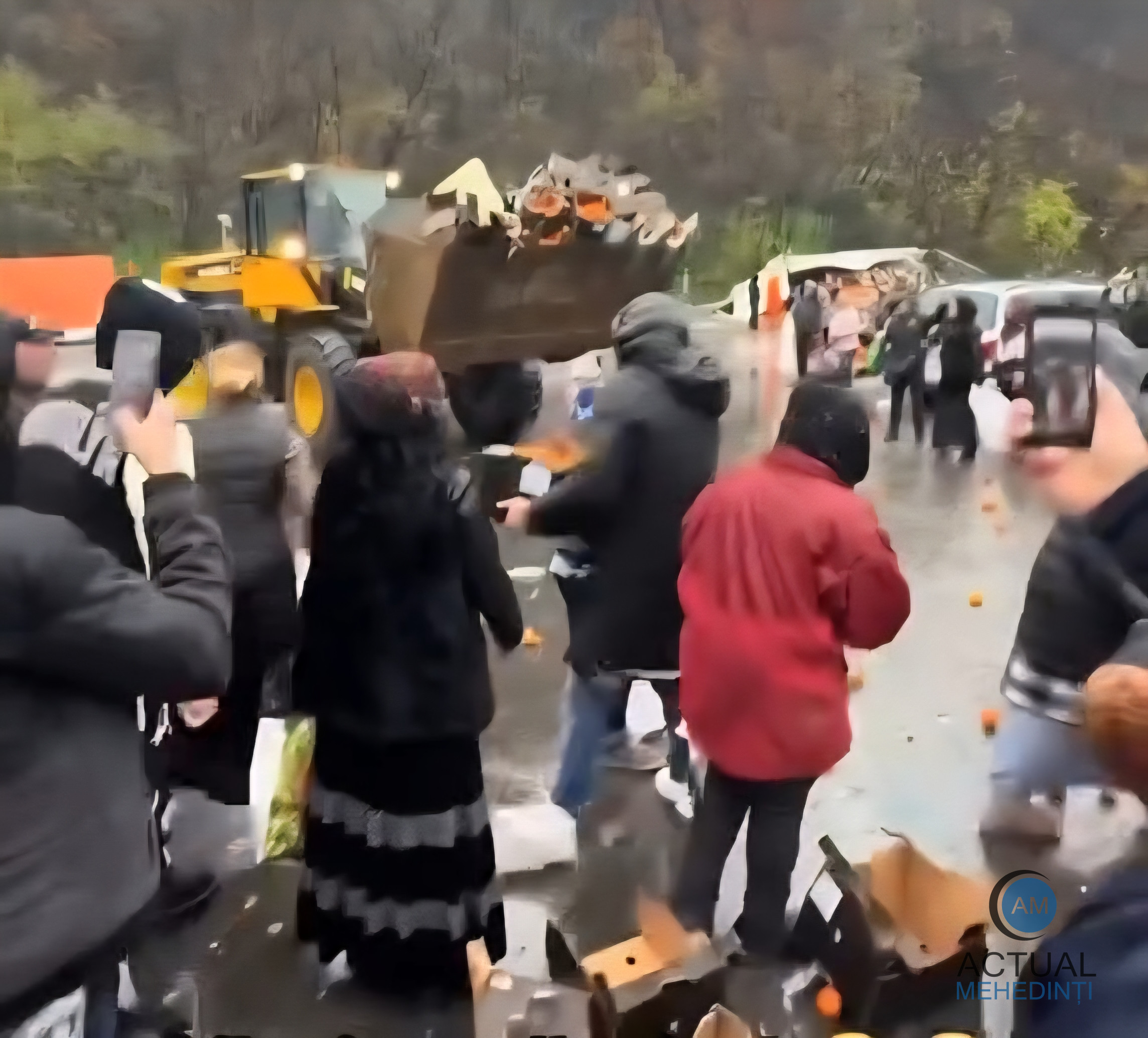 „Mulțumim cetățenilor surprinși în imagini pentru modul exemplar în care i-au <<sprijinit>> pe polițiștii rutieri să elibereze drumul public și acostamentul de tonele de fructe împrăștiate pe carosabil, după ce un TIR a pierdut controlul volanului și s-a răsturnat in județul Mehedinți! Datorită eficienței remarcabile cu care au aplicat metoda tradițională <<țap-țarap>>, acești cetățeni de mare angajament civic au reușit, în doar câteva minute, să <<elibereze>> complet zona, contribuind, desigur, la fluidizarea traficului și la restabilirea circulației pe ambele sensuri. P.S: Deși nu apare în imagini, stăm liniștiți – toate fructele au fost, bineînțeles, predate înapoi, astfel încât pierderile șoferului și ale companiei care deține TIR-ul au fost reduse la minimum.”, transmite Sindicatul Europol.