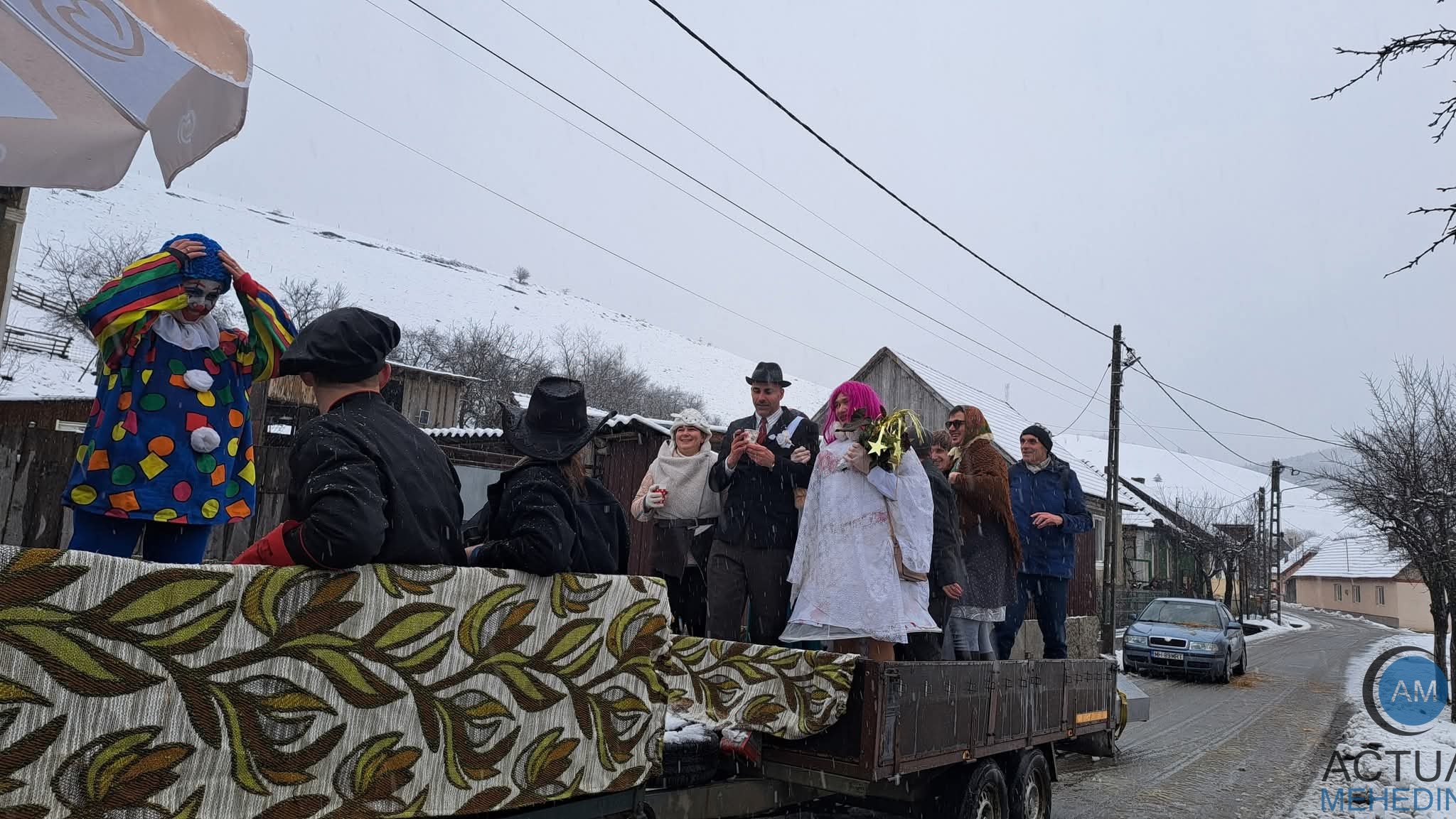 Tinerii – îmbrăcați în costume hilare – străbat ulițele satului într-un alai satiric, obicei menit să marcheze sfârșitul iernii și alungarea spiritelor rele, dar și începutul unui nou an agrar.