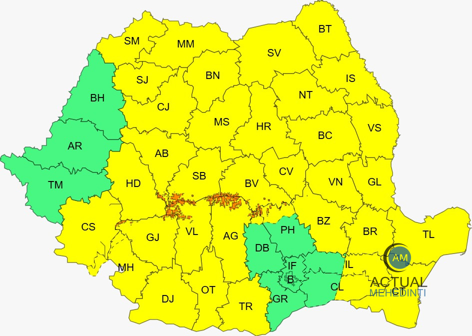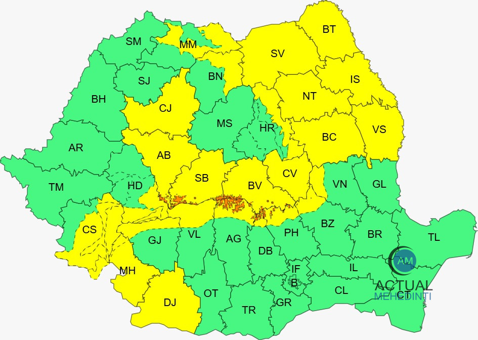 ANM a extins codul galben de vreme rea, pentru 07 aprilie, ora 21:00 – 08 aprilie, ora 10:00. În intervalul menționat, în sudul Banatului, sud-vestul Olteniei, cea mai mare parte a Moldovei precum și în sudul și vestul Transilvaniei, vântul va avea intensificări cu viteze de 50…70 km/h. În Carpații Meridionali și Orientali vor fi rafale de 70…90 km/h, temporar va ninge viscolit, iar vizibilitatea va scădea sub 100 m.