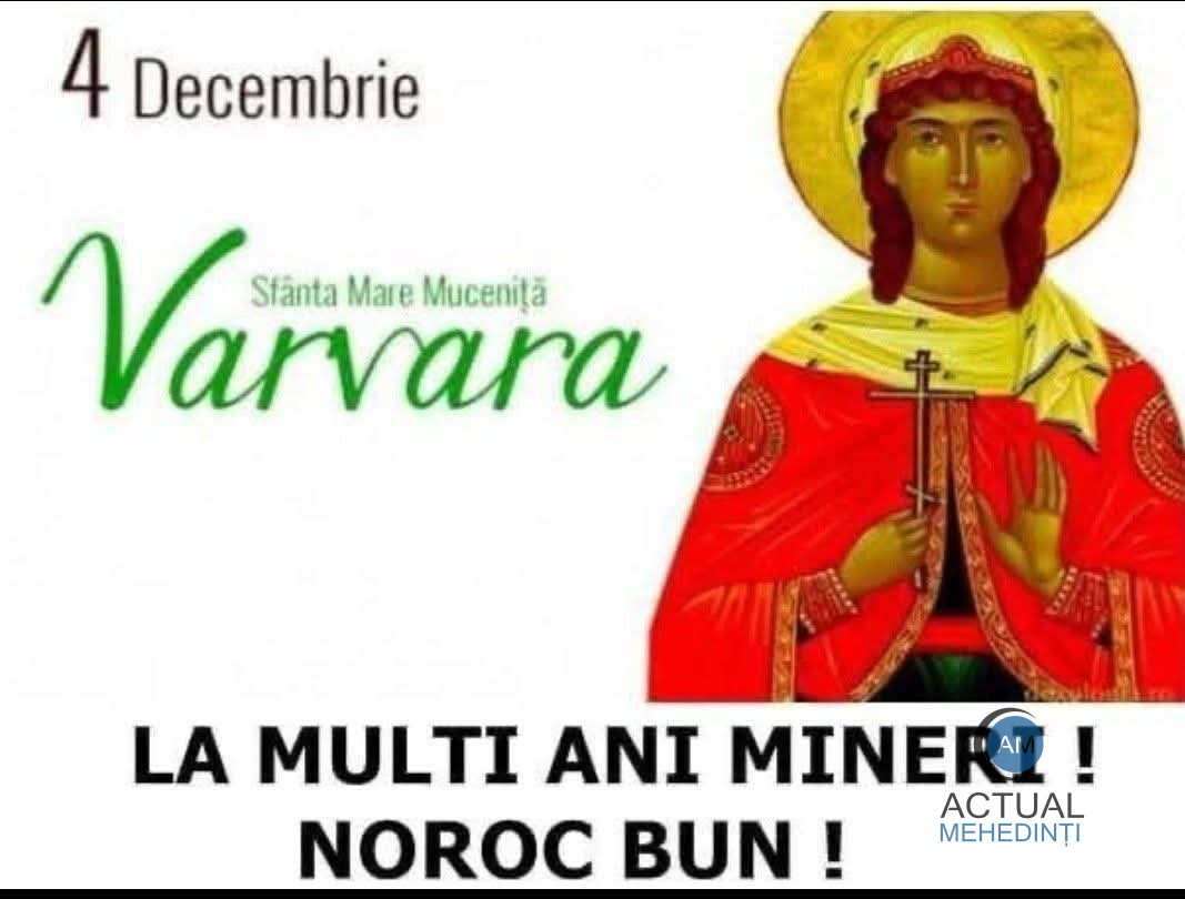 Sfânta Mare Muceniță Varvara este serbată în calendarul ortodox în data de 4 decembrie, fiind considerată ocrotitoarea minerilor. La ceas aniversar pentru ortaci, secretarul general al CNS Cartel Alfa, Mihai Bărbulescu, transmite un mesaj pentru mineri.