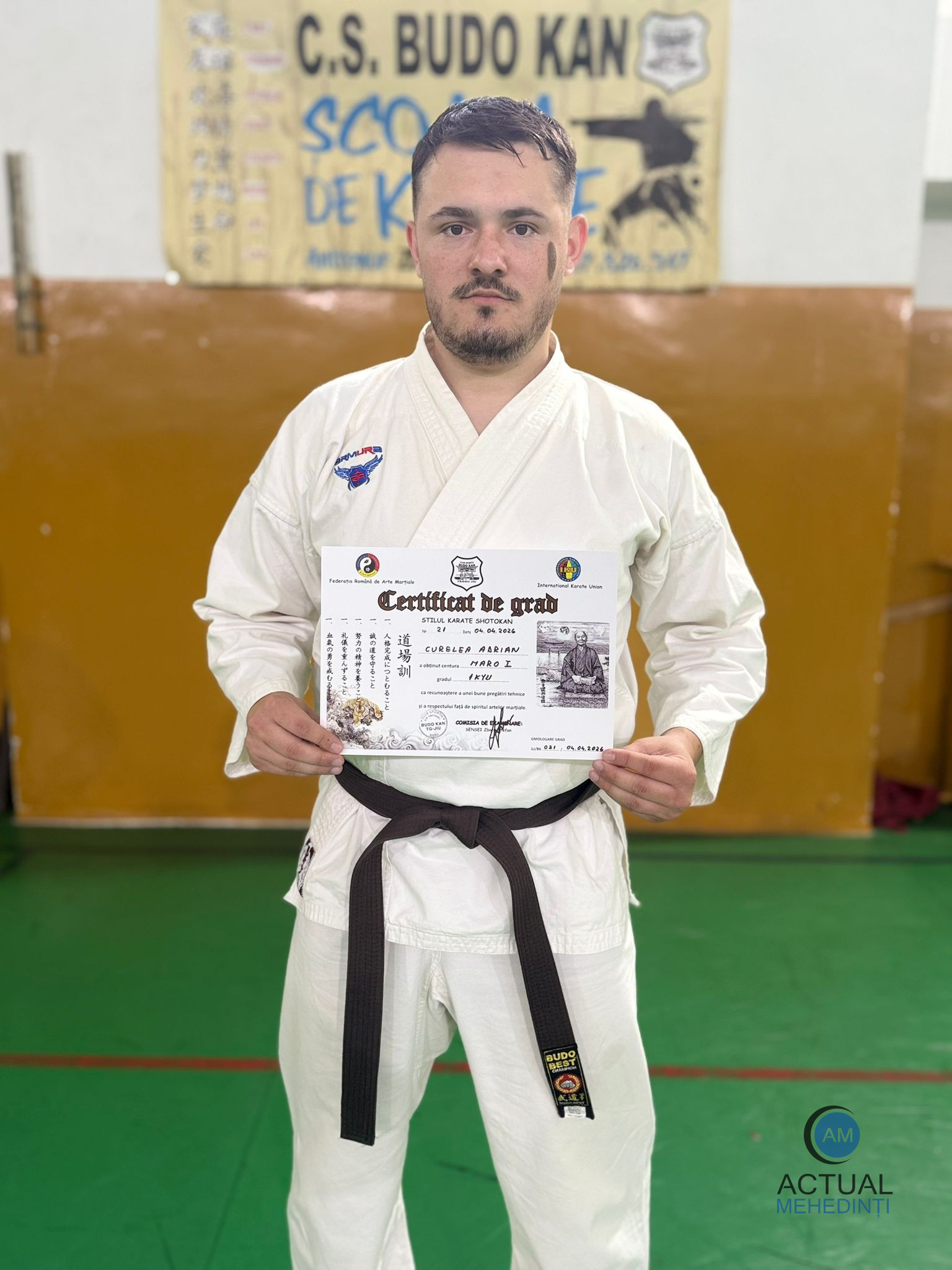 Ion Adrian Curelea, sportiv din județul Mehedinți, legitimat la C.S. BUDO KAN KARATE TG JIU, continuă să își scrie povestea de succes în disciplina Karate Shotokan, după ce a promovat cu succes examenul pentru centura maro 1 KYU, ultima și cea mai importantă treaptă înainte de centura neagră.