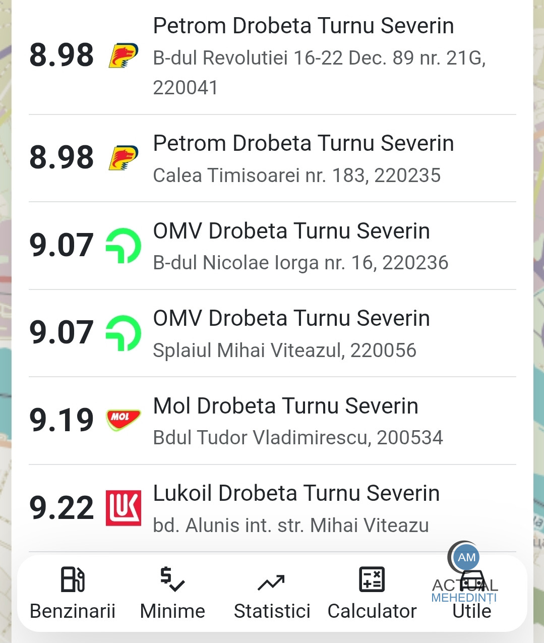 Motorina standard în Severin costă, astăzi, 8,98 lei/l – la Petrom; 9,07 lei/l – la OMV, 9,19 lei/l – la Mol și 9,22 lei/l – la LukOil.