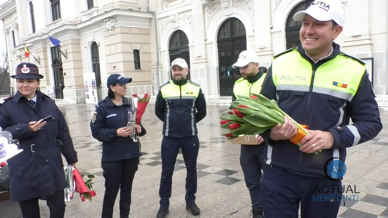 Polițiștii, jandarmii, pompierii și polițiștii de frontieră din cadrul Școlii de Perfecționare a Pregătirii Personalului Poliției de Frontieră Drobeta Turnu Severin și cei ai Serviciului Teritorial de Frontieră au oferit, astăzi, flori și un gând bun, împărțind zâmbete femeilor pe care le-au întâlnit. Acțiunea s-a derulat în sistem integrat.