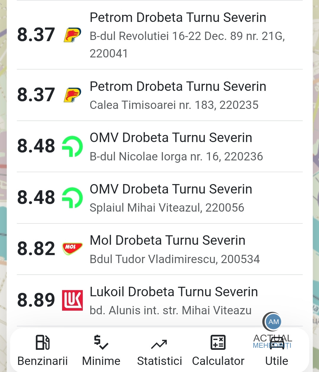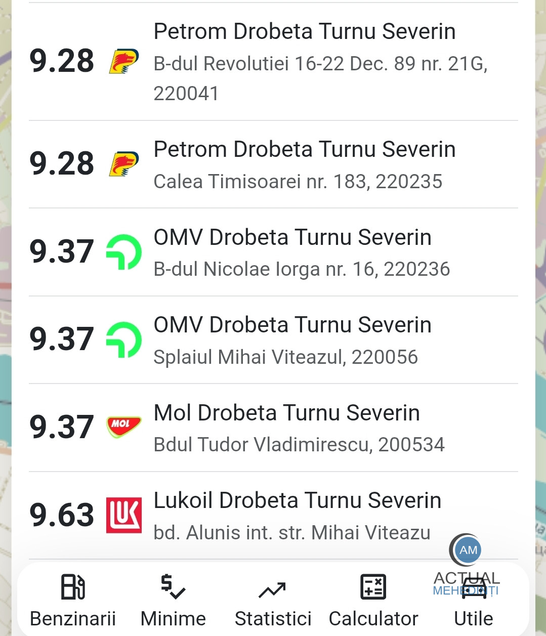 Motorina și benzina s-au ieftinit în această dimineață în majoritatea stațiilor peco din țară. În Drobeta Turnu Severin, la Petrom – Calea Timișoarei, motorina costă 9,28 lei/l, iar benzina – 8,37 lei/l. La OMW – Podu’ Gruii – litrul de motorina costă 9,37 lei, în timp ce litrul de benzină este 8,48 lei.